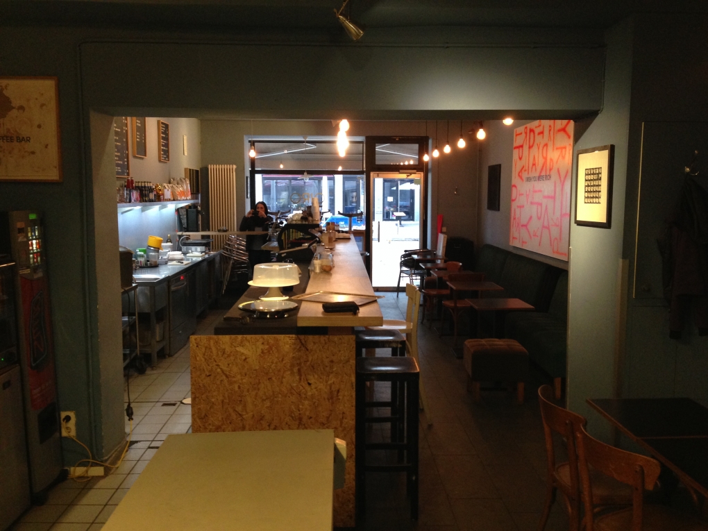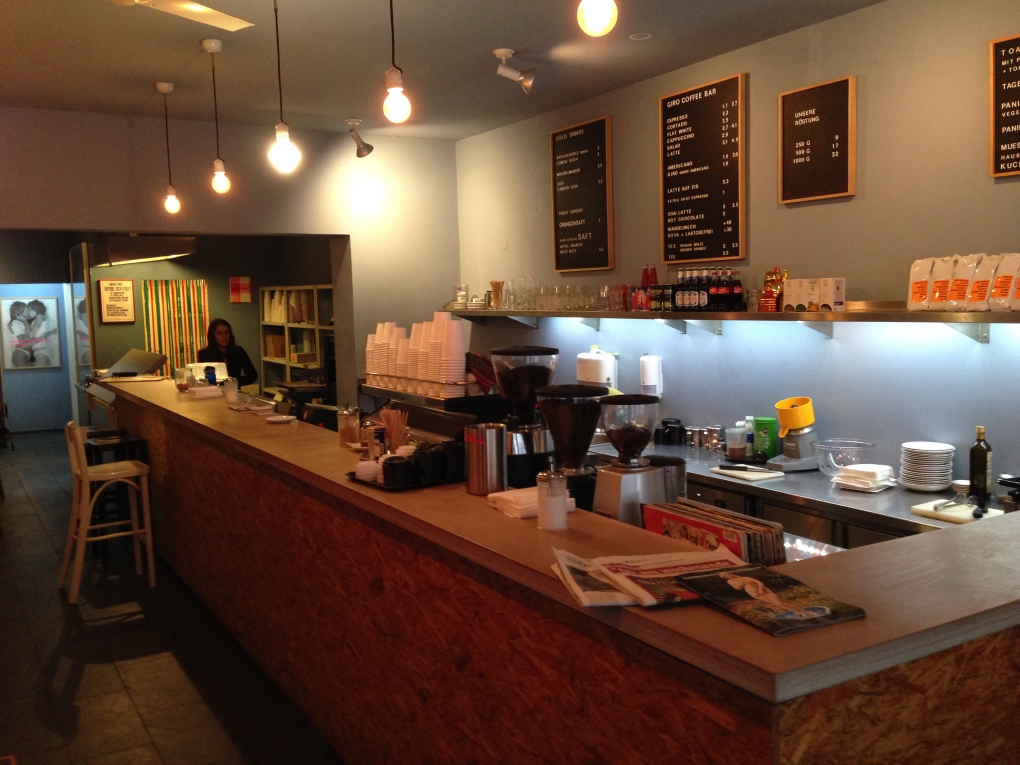 Amy worked at the GIRO Coffee Bar in the Berlin suburb Charlottenburg as a Barista. The cafe is named after the owner Igor, who is also a locally known artist (You can see some of his art in the picture gallery below). Really fortunate about this job was, that Amy worked pretty much just morning shifts, which helped us a lot, running two rooms of our flat on Airbnb.